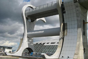隨著科技的發(fā)展,許多技術(shù)與藝術(shù)的結(jié)合品一件件誕生。其中一個(gè)就位于英國(guó),稱為世界十大升降機(jī)之一。佛斯與克萊德運(yùn)河動(dòng)工于1768年,1777年時(shí)她接通了西岸的蘇格蘭第一大城格拉斯哥(Glasgow)與東部佛斯灣(Firth of Forth)的港口城市格蘭茅斯(Grangemouth)。13年后,從格拉斯哥往西到克萊德灣(Firth of Clyde)的水道也完工了。于是,61公里長(zhǎng)的佛斯與克萊德運(yùn)河成了世界上第一條連接兩個(gè)海洋的運(yùn)河航道。1818年到1822年間,51公里長(zhǎng)的聯(lián)合運(yùn)河也建成了。聯(lián)合運(yùn)河沿著地勢(shì)平坦前行的等高線運(yùn)河。然而,兩條運(yùn)河在福爾柯克匯合之前,還得克服35米的高度落差。當(dāng)年工程師們用了11個(gè)水閘來(lái)解決這問(wèn)題。