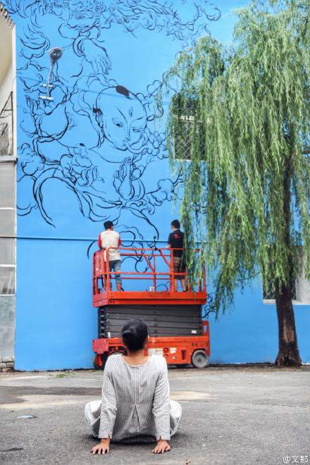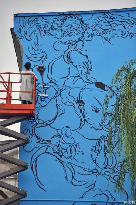 第一次看到用戶在自己家生產的全自行液壓升降機上畫壁畫有點小激動,全電瓶行走和升降,沒有支腿,能更好的貼服墻面,給藝術類學生提供了很大的方便。