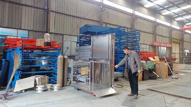 濟南龍豪液壓生產的無障礙(殘疾人)升降機,主要是由方管做的兩組導軌和升降平臺板組成的然后全部外封不銹鋼板,類似一個簡易的小電梯。整體導軌是鑲嵌在通道出入口的墻壁上,或者什么都不依靠固定在地面上,然后向周圍做固定點。而無障礙(殘疾人)升降機在不使用時可以放置于地面持平,這樣不會占用通道出入口處的空間。乘坐輪椅的殘疾人在使用時,輪椅四個輪子可以被固定在臺板上,按動開關后就可以控制升降機上升下降,安全方便。